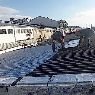 Oldukça eskimiş olan çatı malzemelerini sökmek ilk işimiz oldu. Çatıda çanak, kablolar, baca gibi öğelere zarar vermeden bu işlemi gerçekleştirdik. Beton tabakada gerekli onarımları sağladık. Üstüne ise çatının su yalıtımı işlemini sağlaması amacıyla membran malzemeyi, yapıştırma teknikleriyle döşedik. Üstüne ise arduvaz malzemeyi gerekli yalıtımları tam olarak yerine getirmesini gözeterek, kusursuz bir şekilde döşedik.